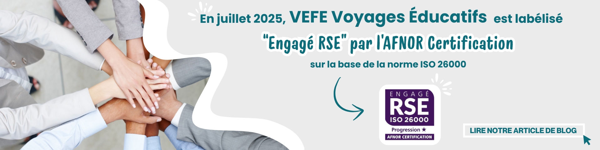 A l'écoute de vos projets, vos besoins, vos envies, notre équipe de professionnels passionnés met toute sa disponibilité et son savoir-faire à votre service. Chaque année, ce sont environ 50 000 collégiens et lycéens accompagnés de leurs professeurs qui voyagent avec VEFE Voyages Educatifs dans le respect des règles de sécurité. Un grand MERCI pour la confiance que vous nous accordez et que vous nous renouvelez depuis 1990 !